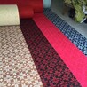 滿鋪地毯這種地毯的幅度一般在3.66 ~4 m ,滿鋪即指鋪設(shè)在室內(nèi)二墻之間的全部地面上,鋪設(shè)場(chǎng)所的室寬超過(guò)毯寬時(shí),展覽地毯雙色提花,可以根據(jù)室內(nèi)面積的條件進(jìn)行裁剪拼接的方法以達(dá)到滿鋪要求,地毯,地毯的底面可以直接與地面用膠黏合,也可以繃緊毯面使地毯與地面之間極少滑移,并且用釘子定位于四周的墻根的方法。滿鋪地毯一般用于居室、病房、會(huì)議室、辦公室、大廳、客房、走廊等多種場(chǎng)合。