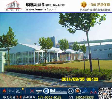 邦夏裝配式篷房建筑篷房穩(wěn)固安全、美觀大方、裝拆快捷、儲運(yùn)方便,被廣泛應(yīng)用于戶外展覽會、博覽會、產(chǎn)品推廣促銷、慶典禮儀、活動聚會、體育賽事活動、節(jié)慶活動(藝術(shù)節(jié)、啤酒節(jié)、美食節(jié))、臨時倉庫、車間和緊急加上完善的配套設(shè)施,如篷內(nèi)天花布幔、ABS硬體墻、玻璃墻、玻璃門、空調(diào)、木地板、地毯和舞臺燈光音響等設(shè)施,使篷房的應(yīng)用功能更具強(qiáng)大,拉好兩張側(cè)三角之后將中縫管從兩張側(cè)三角之間的下端有一段剪掉膠條的地方慢慢往上穿(中縫管有扁鐵的一則朝里面),邦夏篷房是一家集篷房制造、篷房銷售、篷房租賃及提供體育賽事、展覽會、博覽會、戶外婚禮、慶典聚會、接待活動、戶外促銷,產(chǎn)品推廣、節(jié)慶活動、工業(yè)半倉儲,緊急救災(zāi)等用途與一身的篷房公司。,固定方式二:膨脹螺絲(地面是水泥地能破壞的狀況下適用于打膨脹螺釘,而也可以降低費(fèi)用,但要提求現(xiàn)場電源);,本公司的誠信、實(shí)力和產(chǎn)品質(zhì)量獲得業(yè)界的認(rèn)可,擁有完整、科學(xué)的質(zhì)量管理體系。歡迎各界朋友蒞臨參觀、指導(dǎo)和業(yè)務(wù)洽談。
