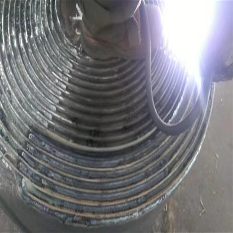 定距柱:定距柱一端應(yīng)有1~2X45*的倒角很重要。因?yàn)槎ň嘀鶖?shù)量很多且螺旋板式換熱器板面不平整,定距柱與螺旋板點(diǎn)焊時(shí)難免有少數(shù)定距柱發(fā)生歪斜,其周邊若沒有倒角,很容易割傷螺旋板;定距柱高度偏差應(yīng)為正偏差0~0.3mm ,因?yàn)槿绻ň嘀庸び胸?fù)偏差存在,螺旋體卷制成形時(shí),定距柱與螺旋體之間不能切實(shí)貼合,還有成排的定距柱沒有支撐螺旋板,削弱了定距柱加強(qiáng)螺旋體強(qiáng)度和剛度的作用;由于螺旋板較薄,定距柱與螺旋板點(diǎn)焊時(shí)應(yīng)注意控制焊接質(zhì)量,讓螺旋體卷制時(shí)不脫落,要注意引弧和收弧時(shí)不要造成板面咬肉現(xiàn)象發(fā)生,且定距柱點(diǎn)焊完畢后要仔細(xì)檢查缺陷。