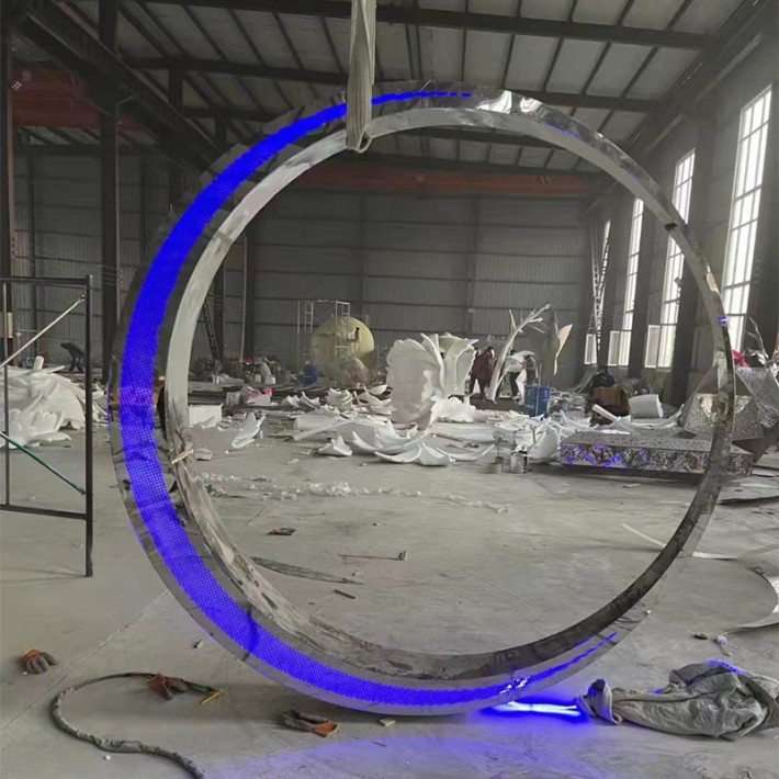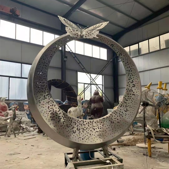 鏤空圓環(huán)雕塑里面可以放置不同顏色的燈帶,透過鏤空圖案放射出不同的色彩,在漆黑的夜晚成就了一道亮麗的風(fēng)景。鏤空月亮雕塑多為定制型雕塑,我們會(huì)根據(jù)甲方使用環(huán)境,擺放的位置等設(shè)計(jì)一款別具一格的鏤空圓環(huán)雕塑,不銹鋼定制雕塑需要一定的工期,因此有需要的親可提前下單,以免影響您的工程使用。