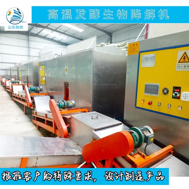 1.液壓自動(dòng)提升料槽里加入墊料(約占廢棄物處理量的 25%~30%),加入益生菌,加熱運(yùn)行。