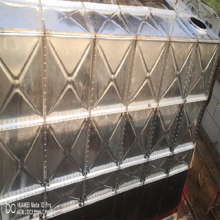 鍍鋅鋼板水箱采用鋼板,沖壓形成的標準塊,周邊鉆孔,經(jīng)鍍鋅處理,現(xiàn)場進行組裝,組裝時標準塊之間硅膠密封,螺栓連接。