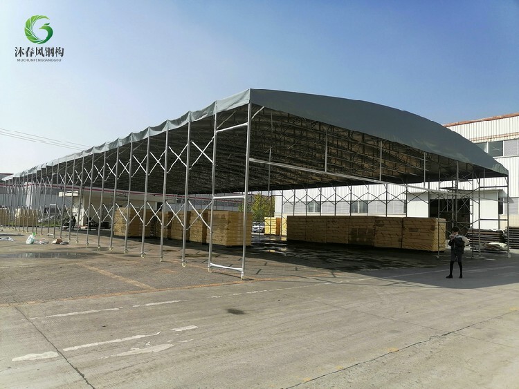 沐春風(fēng)鋼構(gòu)移動(dòng)倉(cāng)儲(chǔ)雨篷,安順?lè)阑鹨苿?dòng)推拉蓬尺寸