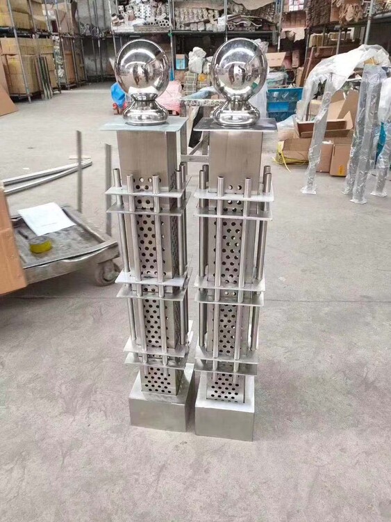 立柱主體板材一般選用6-15MM厚,市場上規(guī)格多為高度為850*50MM或1050*50MM,加上玻璃抓手等配件。興化市展步不銹鋼立柱廠家提供實心板不銹鋼立柱,可批量生產(chǎn),包括不銹鋼立柱,不銹鋼工程立柱,立柱廠家,歡迎來咨詢打樣。304不銹鋼立柱的配件有實心,空心之分,種類也居多。常規(guī)的配件有實心扁掛,角碼,七字掛件,魚嘴夾等。一般夾玻璃的厚度是10mm,12mm厚的玻璃。也有些立柱不需夾玻璃,穿拉絲管,或者實心的圓棒。