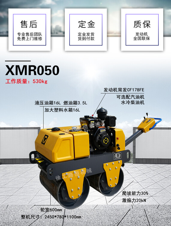 適用范圍:適用于瀝青表面及礫石、砂土等材料的壓實,尤其適用于路緣、溝槽基礎(chǔ)、管道回填、草坪及小型場地的壓實作業(yè)。
