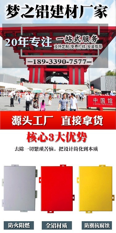 戶外用鋁單板厚度一般選擇2.5mm、3mm;低層和裙樓部分可選擇2.0mm厚度,室內(nèi)墻面與吊頂用時(shí)可選擇薄1.0mm或1.5mm。
