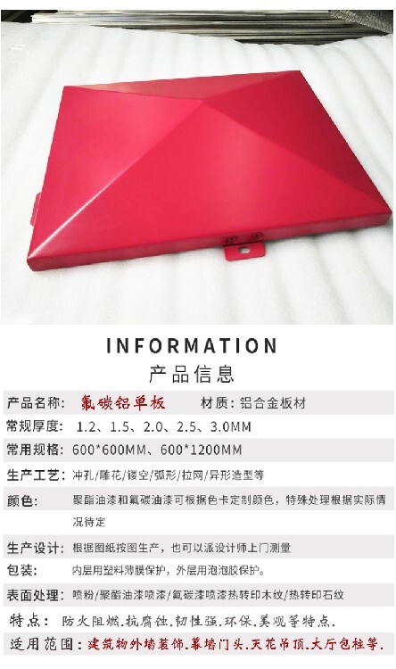 一、鋁單板常規(guī)規(guī)格600*600mm、600*1200mm。