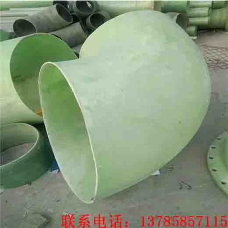 玻璃鋼彎頭采用手糊成型,玻璃鋼彎頭有三種結構形式,分別為模具上整體成型、半模具分體成型、預制管道后蝦節(jié)彎成型。