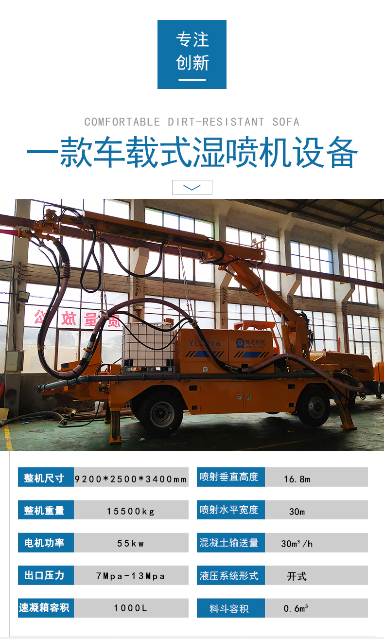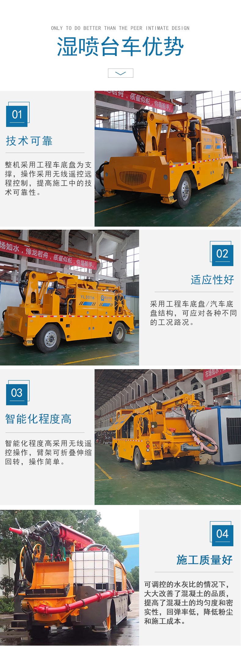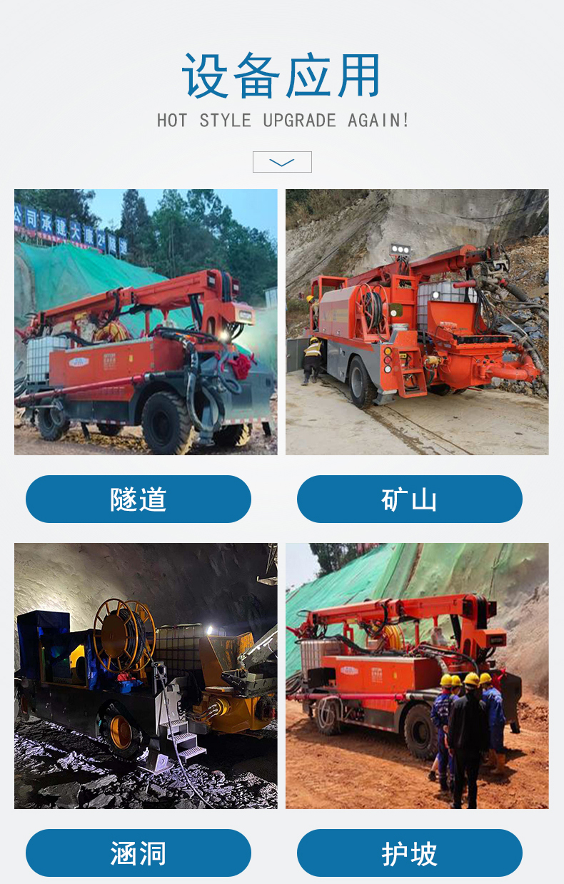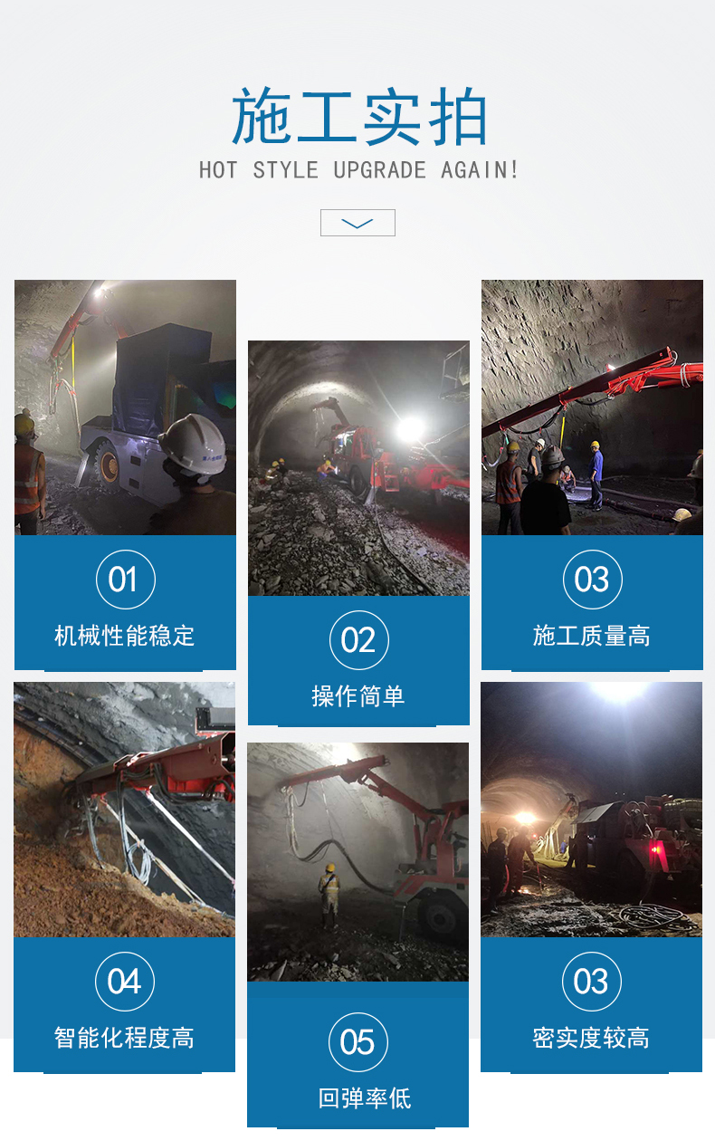 該臺車的實際能力目前保持在6-8 m3/h(臺車很大能力為20 m3/h),以后,隨著需求的,臺車的能力可以進一步調(diào)大。這臺Cobra混凝土濕噴臺車每班兩罐混凝土,每罐3.5 m3,大約需要40分鐘。每次厚度3-5厘米,一般兩次(初噴和復(fù)噴)。每次進尺2-3米挪車一次,邊墻和頂拱的平均回彈率約為10%。在每次結(jié)束之后,工人們都會對臺車進行的清洗。#車載式混凝土濕噴機是綜合-內(nèi)外濕噴機技術(shù)研發(fā)的新一代車載式混凝土濕噴機解決了小型濕噴機不能長大混凝土的不足,很大地了內(nèi)部混凝土施工人員的工作,了施工效率,了混凝土消耗量,切實保障施工,雙動力工作,更低碳排放,更切合環(huán)保理念。是水利水電、鐵路、公路等施工的佳選擇。#懸掛式機械臂濕噴機 多功能濕噴機械手 濕噴機械廠家
