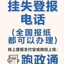 ——就會(huì)有工作人員來(lái)聯(lián)系您,為您提供的咨詢輔導(dǎo),快一天的時(shí)間就能成功辦理,還提供報(bào)紙郵寄服務(wù),價(jià)格實(shí)惠,全程交易公開(kāi)透明,非常方便的說(shuō)。