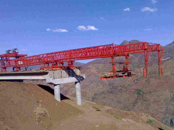 提梁機是將梁片從地面吊至運梁車上,再將梁片運至架橋機底部。兩者一起工作。架橋機有幾種類型。根據(jù)架橋機行走方式的不同,有的采用驅(qū)動輪驅(qū)動,有的采用導(dǎo)梁結(jié)構(gòu)。