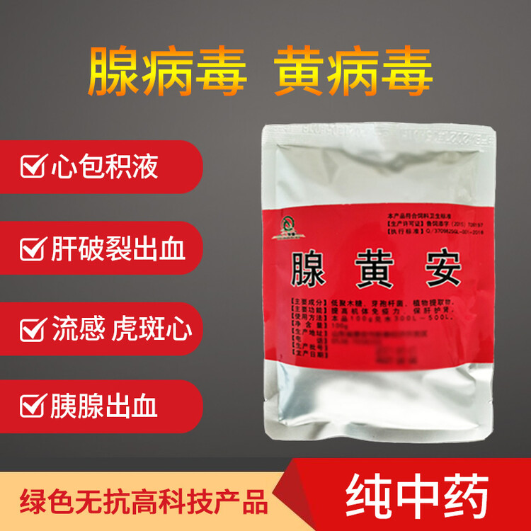 腺黃安100g兌水300-400斤水或150-200斤料使用。預防雞鴨鵝得病。