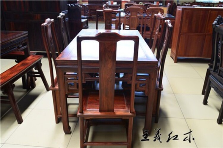 濟寧七件套緬甸花梨餐桌收藏價值高,中式餐桌椅