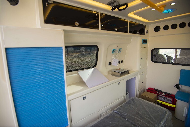該類救護車里的設備要比A型多一些,在配備A型囊括的相關設備之外,還需要加壓輸液裝置、胸腔減壓設備、便攜式呼吸機或多功能呼吸機、除顫儀、心電監(jiān)護儀(帶存儲和打印)、便攜式氣道管理系統(tǒng)。