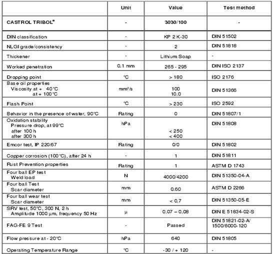 軸承。由于100 mm2/s嘉實(shí)多賽寶?3030 / 100也可用于快速移動(dòng)的基礎(chǔ)油粘度