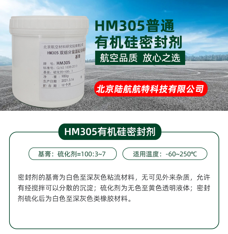 HM 305電器灌封用有機(jī)硅密封劑屬于雙組分縮合型有機(jī)硅密封劑,主要起密封作用,在空氣介質(zhì)中工作溫度為-60 ~ 250℃。,通過(guò)配套使用NJD- 6或 NJD-9 粘接底涂劑,對(duì)鋼、 鈦合金和鋁合金等金屬材料、 鋅黃底漆 、聚氨酯 面漆和陶瓷材料等具有良好的粘接性能,應(yīng)用于飛機(jī)結(jié)構(gòu)件鏍接、 鉚接接頭和儀表 、電阻器、無(wú)線電電子設(shè)備的表面密封,以及密封制件的修補(bǔ)密封。