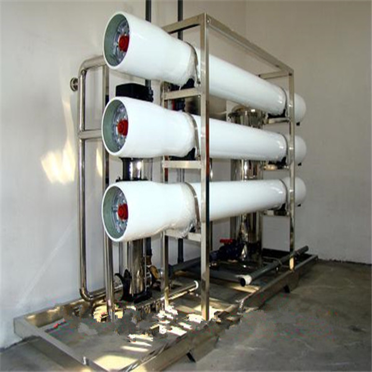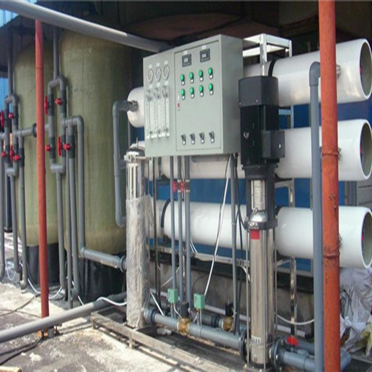 二、雙級反滲透設(shè)備的構(gòu)成雙級反滲透水處理系統(tǒng)一般包括預(yù)處理系統(tǒng)、反滲透裝置、后處理系統(tǒng)、清洗系統(tǒng)和電氣控制系統(tǒng)等。預(yù)處理系統(tǒng)一般包括原水泵、加藥裝置、石英砂過濾器、活性炭過濾器、精密過濾器等。其主要作用是降低原水的污染指數(shù)和余氯等其他雜質(zhì),達到反滲透的進水要求。