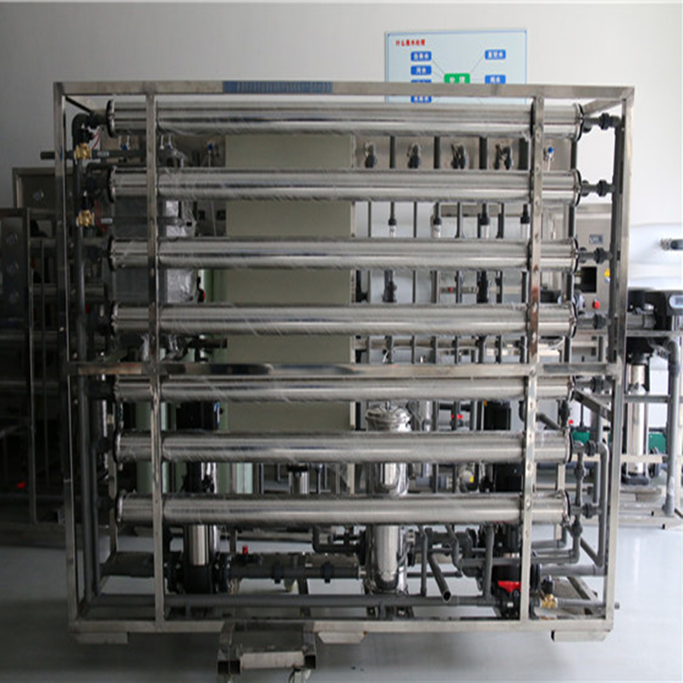 一、RO反滲透主機:主要有增壓泵、膜殼、反滲透膜、控制電路等組成,是整個水處理系統(tǒng)中的核心部分,產(chǎn)水水質(zhì)的好壞也取決該部分。只要膜的型號及增壓泵的型號選取得當,反滲透主機對水中鹽分的過濾能力都能達到99%以上,出水電導(dǎo)率可在10us/cm(25度)以內(nèi)。