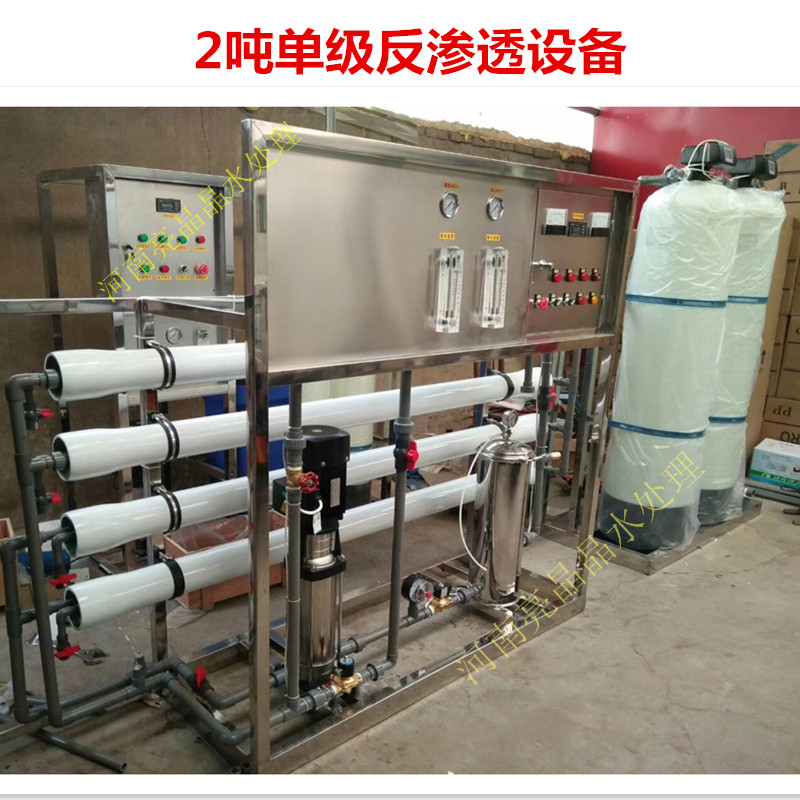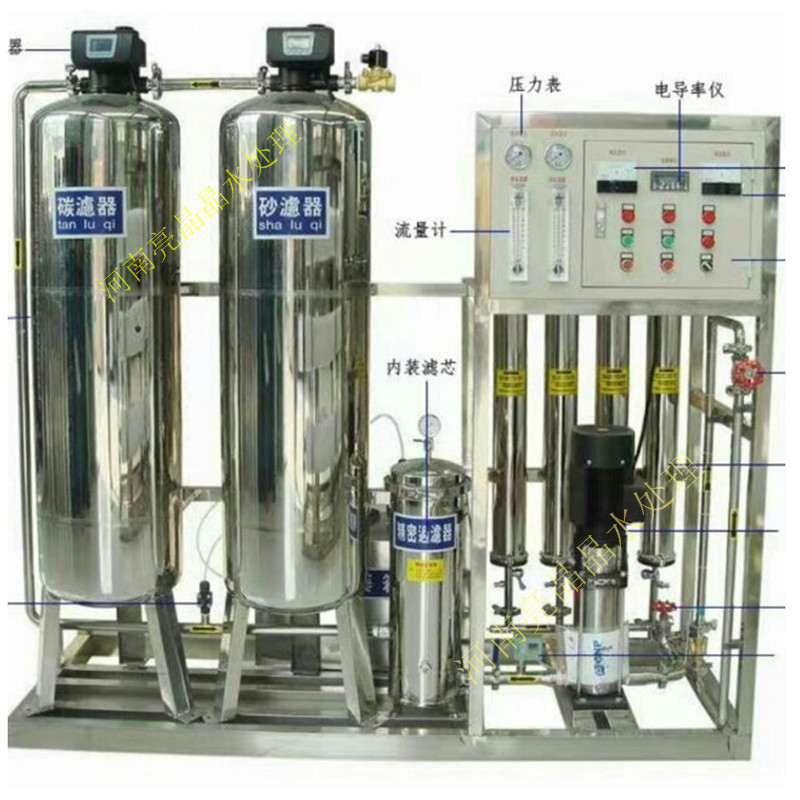 反滲透純凈水設(shè)備中設(shè)計了一種反滲透膜。膜兩側(cè)的壓力不同,通過兩側(cè)的壓力為動力,壓迫原水通過反滲透膜,鹽的濃度低的會向濃度高的鹽方向滲透,能夠達(dá)到的平衡狀態(tài)下,就是液體的滲透壓。當(dāng)含有的鹽水一側(cè)的壓力對于另一側(cè)的滲透壓力時候,就會發(fā)生反方向的流動,就產(chǎn)生了反滲透過程。