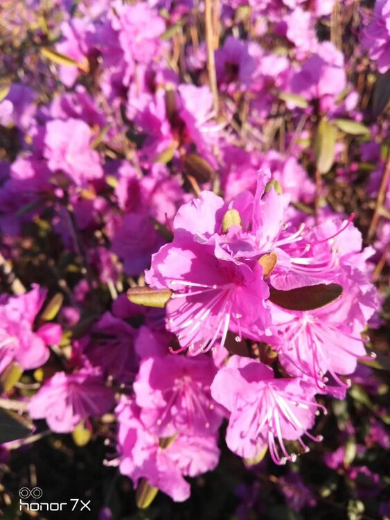 興安杜鵑(學(xué)名:RhododendrondauricumL.)是杜鵑花科,杜鵑花屬半常綠灌木,高可達(dá)2米,分枝多。葉片近革質(zhì),橢圓形或長圓形,兩端鈍,上面深綠,下面淡綠,葉柄被微柔毛。